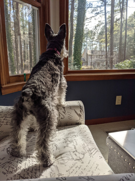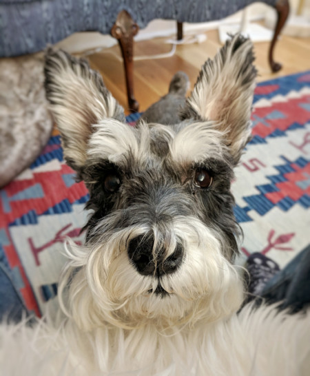 She was remarkably well behaved – she knew the yard boundaries and wouldn’t cross them, and she never tried to grab food off a table. Her beard was also remarkable, both for size and volume (and occasional static), but also for the cleanliness- we never figured out how she managed that! She did tend to attract all manner of leaves and outdoor debris to her beard as well.