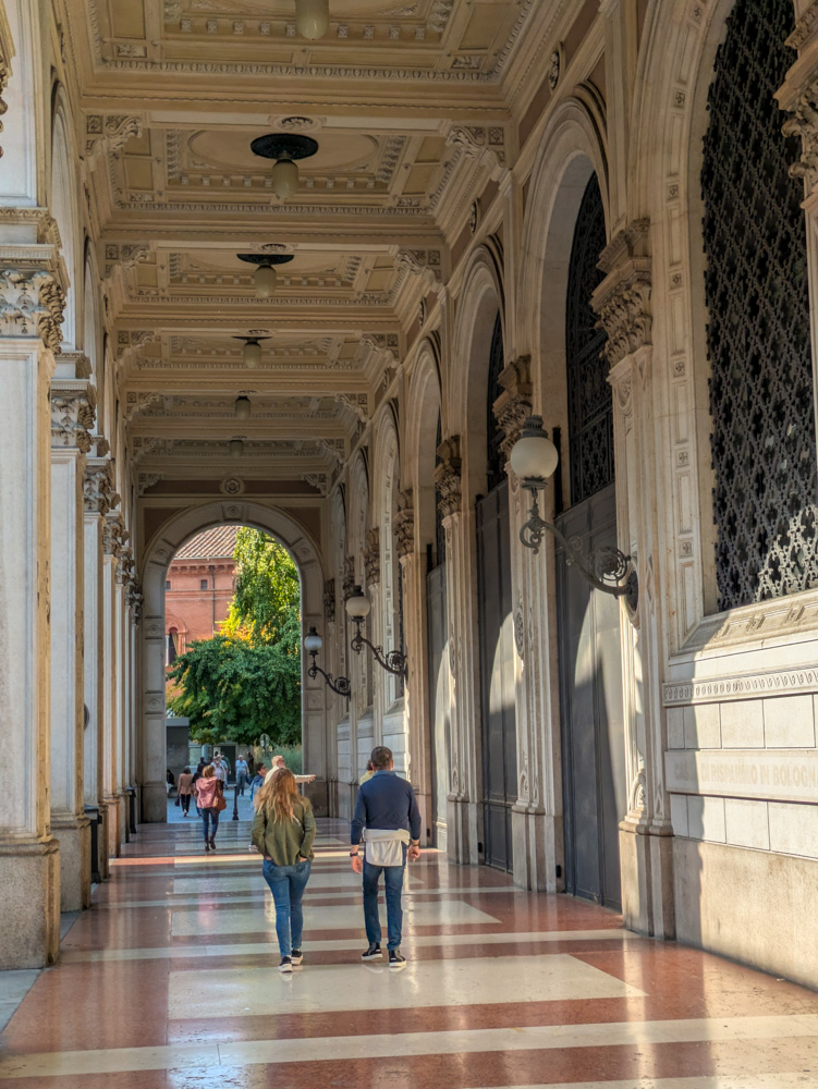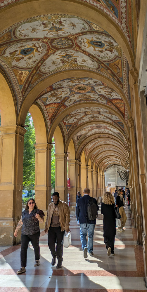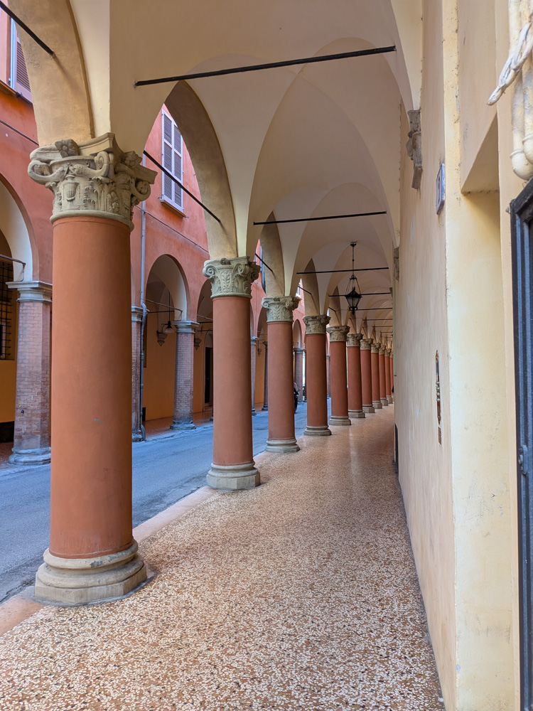 Bologna is well known for their porticos, which were even more extensive then we had originally realized. The city is also quite colorful, with many buildings painted in shades of orange and pink. However, that leads to fewer trees in the center, something we definitely missed after a while.