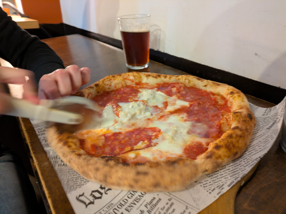Zapap – stopped in for pizza after hitting an aperitivo place down the street on Via del Pratello. We split the “joy” with mozzarella, gorgonzola, and hot salami. The pizza was messy and a little hard to pick up, but it was delicious. For drinks we tried two of the house beers, the rosa romano and the dunkel. Would imagine this place would be a great takeaway option as well.