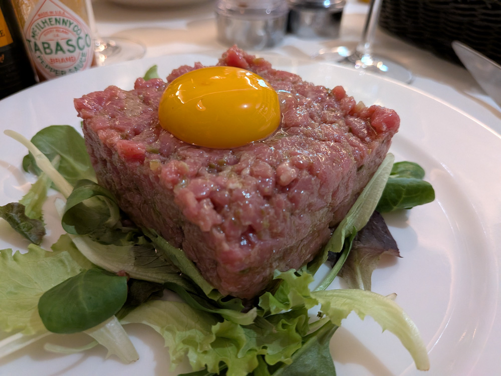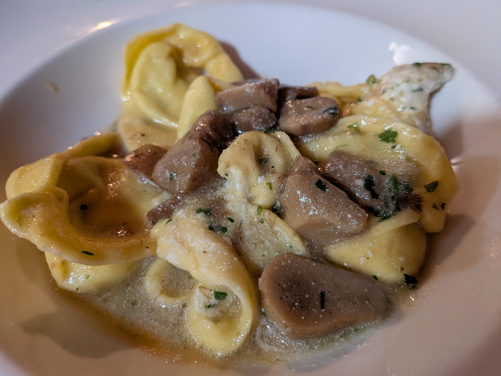 We made a reservation in person a few days ahead of our second visit and this time paired our meal with a pinogletto Frizzante. Eric got the rosa tortellini with pine nuts again and I was more in the mood for a steak tartare, which was quite large. Service both times was friendly and welcoming.