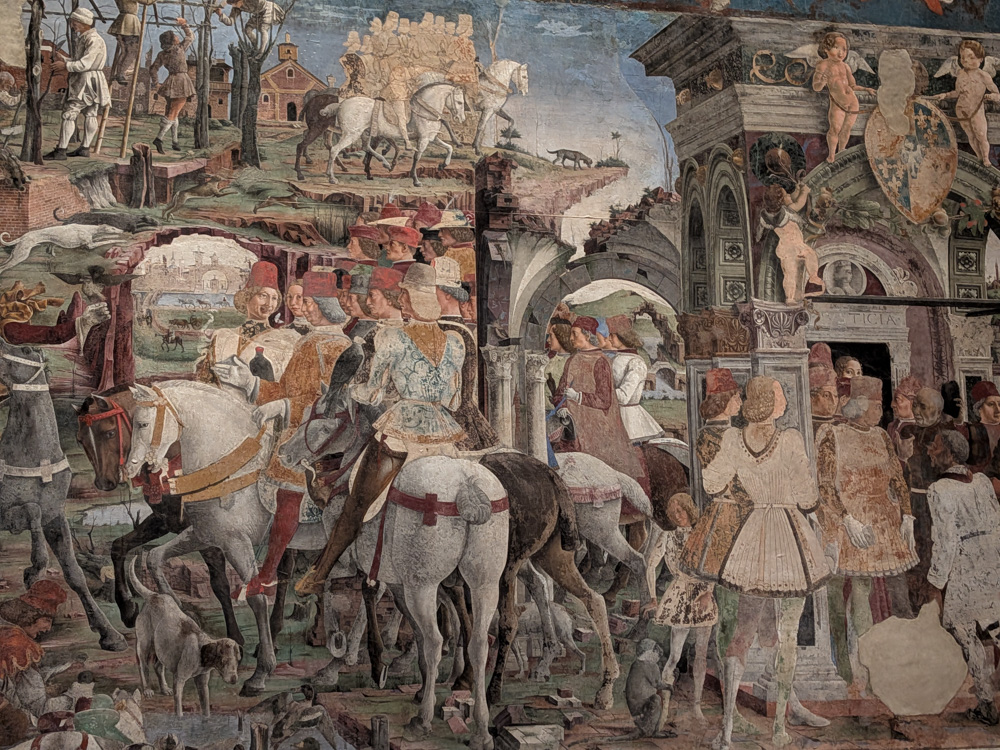 At this point we were a bit tired, but we walked over to Palazzo Schifanoia to check it out. The video introduction to the building’s history was actually pretty informative, showing how it evolved over the years. First rooms had some artifacts (that had been mentioned in the castle), and then the second level let you see the fresco walls up close.