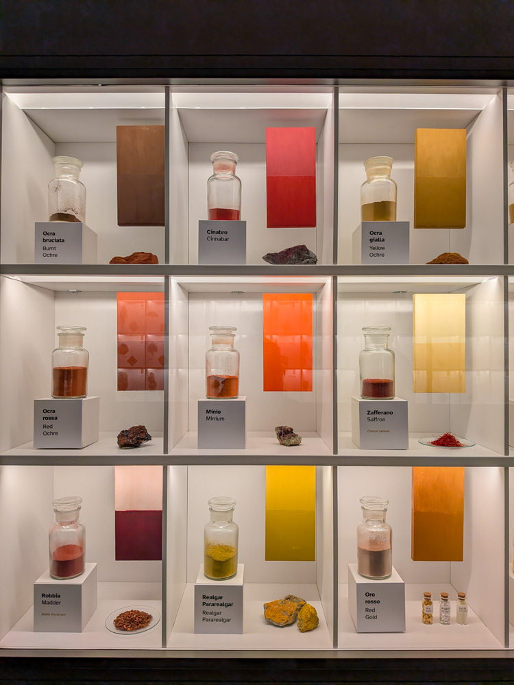 We skipped the iconography section, and went up the stairs to the decorated rooms on the second floor. As with the Royal Museums of Turin, the rooms featured lots of ornate gold plus inlay furniture. The museum was also featuring a Tintoretto and Emilio Vedova special exhibit and had a hidden garden space in the former moat.