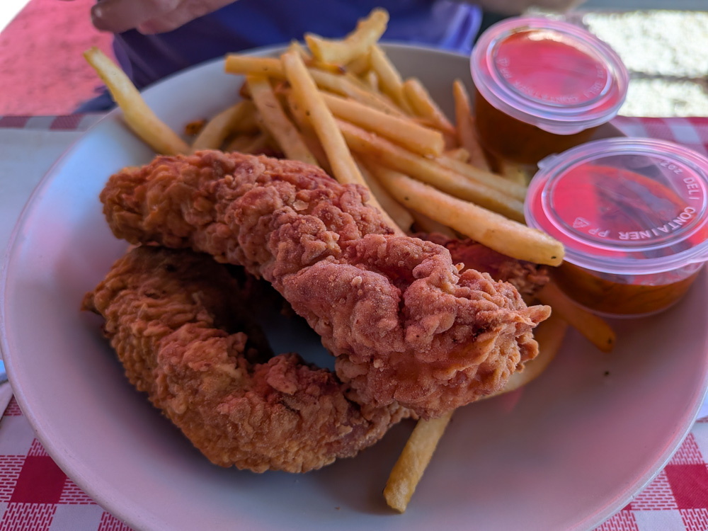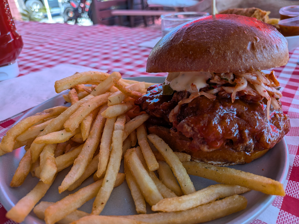 Germain’s Chicken Sandwiches – Located less than a 10 minute walk from our place, we stopped in for lunch on a Thursday. I got the Korean Fried Chicken Sandwich with kimchi (messy and delicious) and Eric got an order of Chicken Fingers, “What the Flock”. Both came with ranch fries and we wound up taking home leftovers as the portions were large!