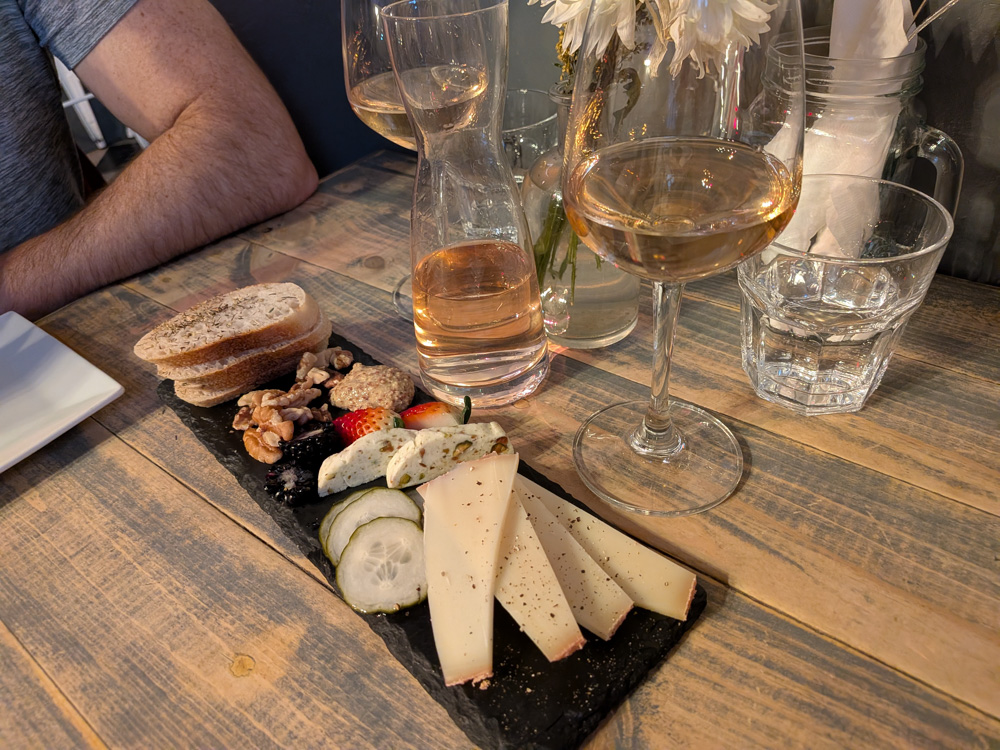 Alpin Bistro – A French-inspired casual restaurant right in the heart of downtown, we went for happy hour to share a small cheese plate with a half carafe of rose wine for $22. For dinner we each opted for a Westmalle beer (in bottles), the dubbel for me and tripel for Eric. I paired my beer with a butternut squash and goat cheese tart (delicious) and Eric had the Croque Monsieur, which he thought was excellent. The vibe and service were very nice. Recommended.