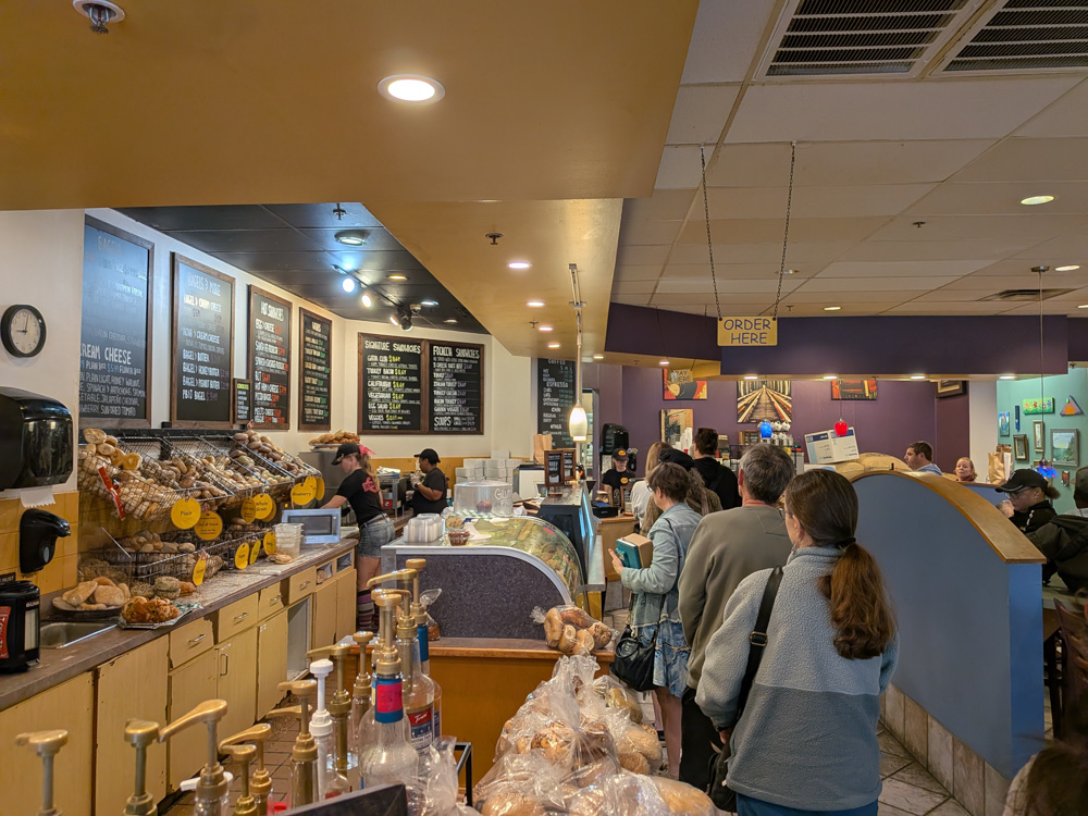 Bagel Bakery – On Saturday morning, I picked up an egg and cheese bagel sandwich for Eric and a cheese and jalapeño bagel we ate later on our road trip back south. Both bagels were bready and just okay but the place was slammed!