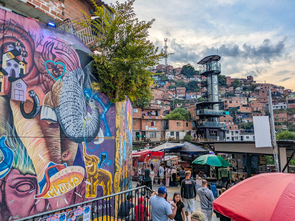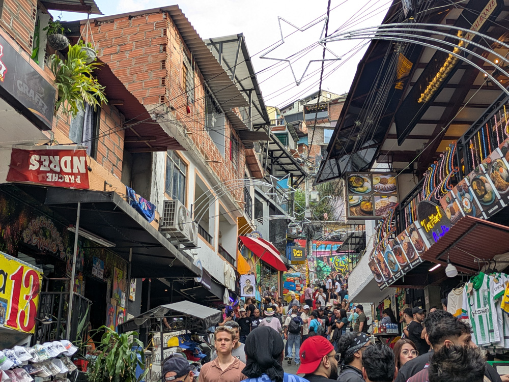 After some great views, we took the cable car back down and boarded a local bus that took our group west, deeper into the Comuna 13 neighborhood, followed by a steep uphill walk.