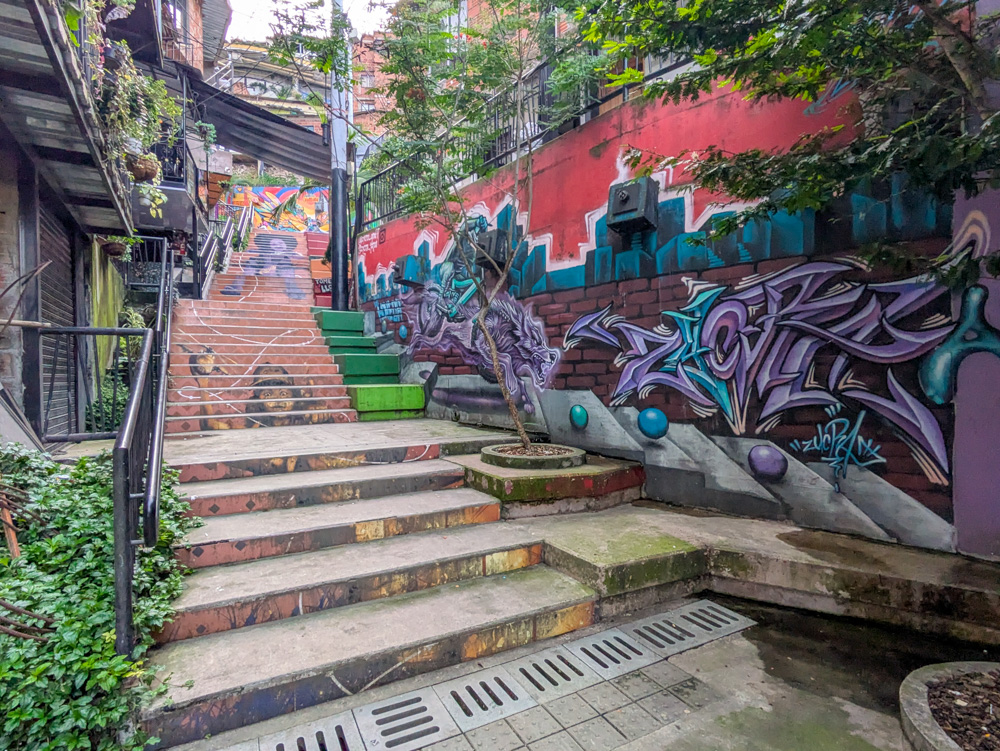 Our Comuna 13 tour started from Poblado, so we Ubered over an hour early and briefly explored the neighborhood. We started by walking to Parque Lleras, a nice garden by day, hub of nightlife at night (apparently). We also had a quick walk through the Manila neighborhood and decided to return here for dinner after the tour.