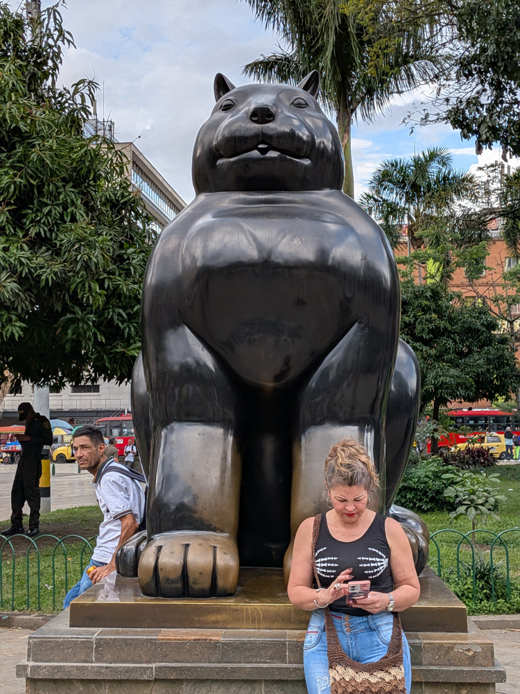 We passed a white church, Parroquia de la Veracruz, but didn’t stop because the area is known for prostitutes. Our next site was Plaza Botero which is full of the artist’s larger than life sculptures (a beautiful culture building nearby also).