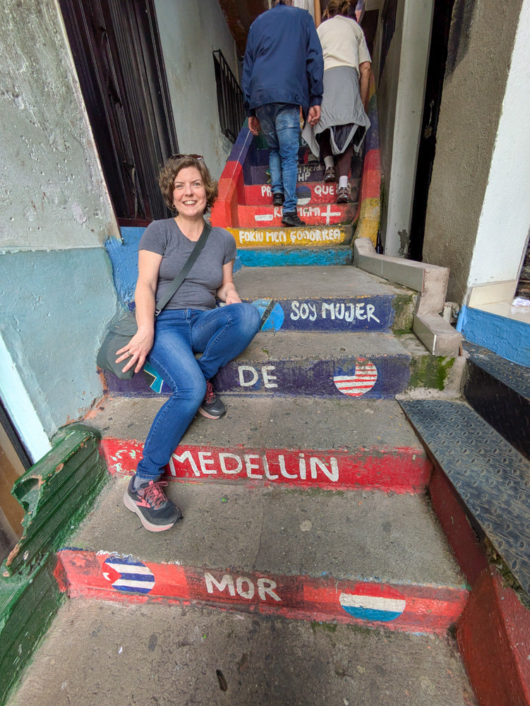 After some great views, we took the cable car back down and boarded a local bus that took our group west, deeper into the Comuna 13 neighborhood, followed by a steep uphill walk.