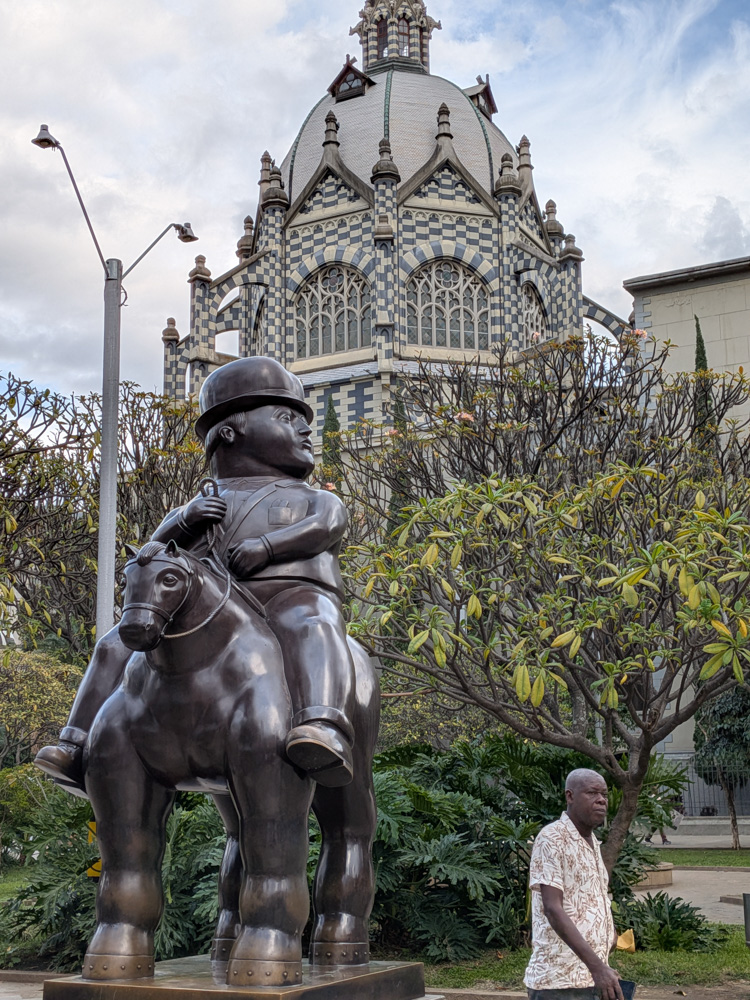 We passed a white church, Parroquia de la Veracruz, but didn’t stop because the area is known for prostitutes. Our next site was Plaza Botero which is full of the artist’s larger than life sculptures (a beautiful culture building nearby also).