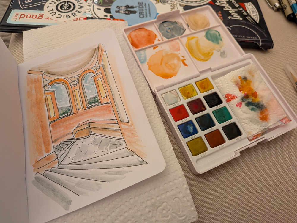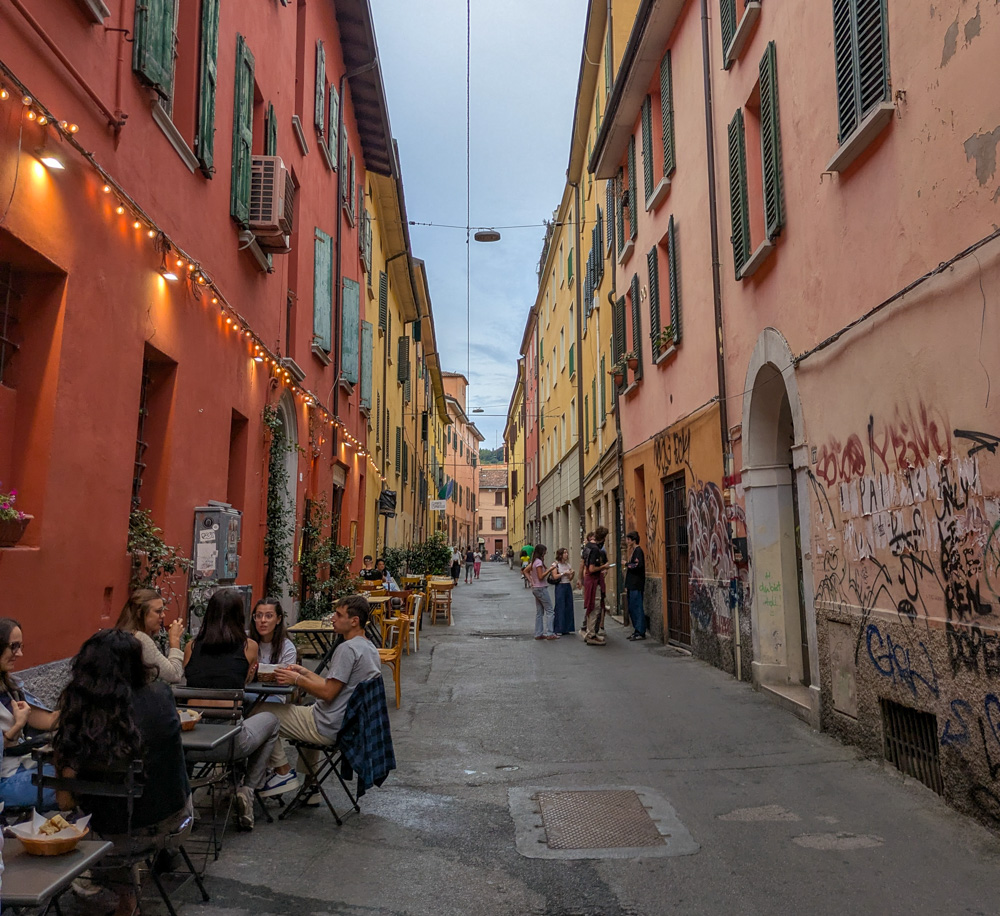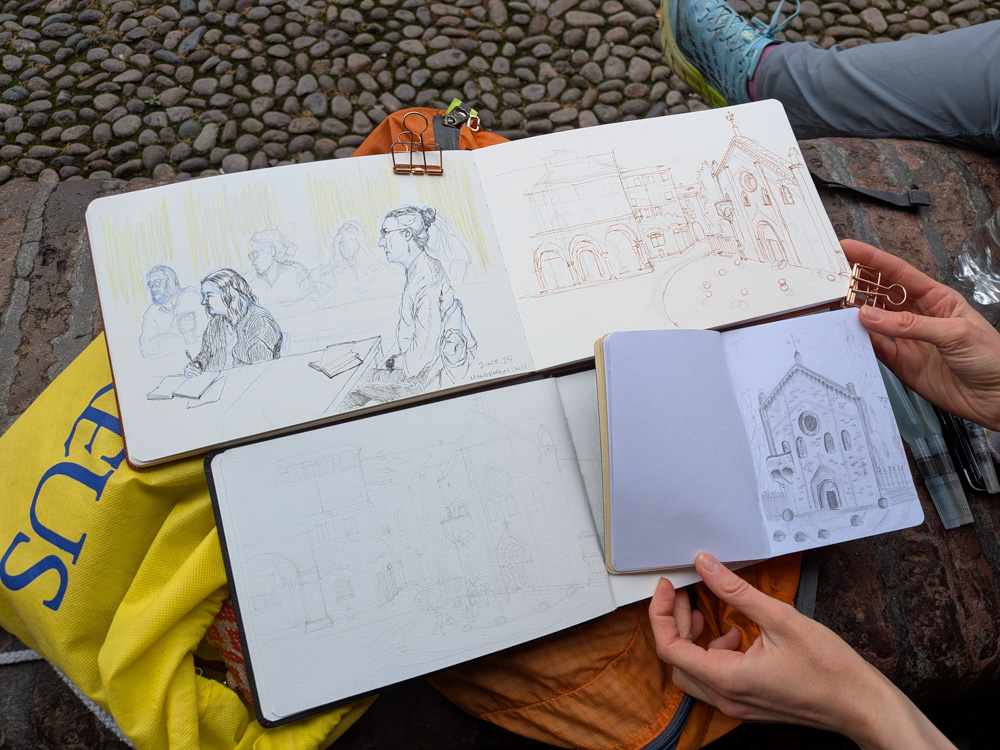 Bologna, October 2025 living space in our airbnbriff on rosie streetartpassatelli with prosciutto at il Passatello di Bolognaall the supermarket sauces!Piazza Galvaniend of a Free Palestine protestVia Nazario Saurobe like a pandahidden rats mural on Via del PratelloVia del PratelloBasilica di San FrancescoBasilica di San FrancescoMo Mortadella sandwichmeat and cheese selectionapertivo at Il Misticotortellini with prosciutto at Trattoria Nonna GigiaVia Porta NovaVia de GombrutiPorta SaragozzaDrinkNow barscribble girl street artcocktails and snacks at Mojo Handpizza at Zapap BolognaVia Ugo BassiPiazza MaggioreQuadrilaterofruit stand in the QuadrilateroUrban Sketchers meetup with proseccocolorful buildings on Via SaragozzaArco del MeloncelloPortico di San Lucaviews from Portico di San Lucacity views from Portico di San LucaSantuario Madonna di San Lucairon gate detailstaircase viewsSantuario Madonna di San LucaMigarba sandwich prep areaMigarba sandwich - delish!apertivo at Enoteca Bar Des ArtsTabacchi street art on Via del Pratellobruschette at TanninoTanninogelato from Gelateria Galliera 49Sunday morning outdoor massBasilica di San DomenicoBasilica di San DomenicoBasilica di San DomenicoPiazzetta dei Servi di MariaMercato del Novale Slow Food Bolognaminiature room at Museo Davia Bargellinioil painting at stagecoach at Museo Davia Bargellinistagecoach at Museo Davia Bargelliniporchetta sandwich at I Panini di Miròdining under the porticosVia San VitaleSarcastic Collage paste-upsBasilica Santuario di Santo Stefanofloor mosaic in Church of the Crucifixfresco in Basilica Santuario di Santo StefanoBasilica of the Holy SepulchreCross of St Agricolabuilding detail in Pilate's CourtyardPilate's CourtyardBasilica Santuario di Santo StefanoBasilica di Santa Maria dei ServiBologna street scene with teal FiatVia Guido ReniBologna's Two Towerssee the tightrope walker!?this stuff is magic for making brodobakery in Mercato delle ErbeVia San Giorgio porticoscured meat options at CONADChiesa dei Santi Gregorio e SiroBasilica Collegiata dei Santi Bartolomeo e GaetanoThe skin of Nathanael Bar-TolomeoPalazzo ErcolaniPalazzo Ercolanigorgeous portico near Piazza CavourBasilica di San Paolo MaggioreTuesday flower market at Piazza San Francescofruit and flowers at the apartmentlunch at Trattoria Valeriolasagna at Trattoria Valeriosweets at La BorbonicaVinoteca Bolognathe beef carpaccio was under there somewhere!chocolate tenerina at Hostaria San Carlinoour reservation marker at Marsalinotortellini with truffles at MarsalinoVincent Herring at CAMERA jazz & music clubPiazza del Nettunostained glass at Basilica di San Petroniosundial at Basilica di San PetronioThe Pietà at Basilica di San Petroniodrinks at Rino's Wine Barapertivo at Rino's Wine Barchoir concert at Basilica di San PetronioPalazzo d'Accursiodamaged Burger King after train station protestsnew urban sketching friends in Bolognamy drawing of Santo Stefanothe group's sketchesstreet art by Exit Enterbarcode muralBasilica di San Giacomo Maggioretire blockade near Via Zambonireligious art at Pinacoteca Nazionale di Bolognareligious art at Pinacoteca Nazionale di BolognaPinacoteca Nazionale di Bolognajuniper berriesUniversity botanical gardenCHEAP street art postersbruschette at TanninoVia Carbonarasculpture by Roberto "Freak" Antonidinner at home with local fresh pasta!a few gelato options at Gelateria GianniPiazza MaggioreParrocchia Sacro Cuore Gesupews at Parrocchia Sacro Cuore Gesumural on Via Francesco AlbaniMercado Francesco AlbaniEnoteca Italianalunch at Hostaria San Carlinotortellini with artichokes and lemon at Hostaria San Carlinoconstruction!San Luca sketchingdinner-time lines at Pam (grocery store)apertivo snacks at Sorsococktails at il MisticoBiblioteca d’Arte e di Storia di San Giorgiothe meridian line still works 370 years later!beers at Puntogarganelli with mortadella at Al Sangioveselooking for bargains at the Piazza della 8 Agosto flea marketlasagna at ScemuÁ Bistrotgramigna with sausage at ScemuÁ BistrotScemuÁ Bistrotpedestrian only on Sundaysantique marketportico on Via Santo Stefanobest gelato in Bologna at Cremeria Santo StefanoVia Farini porticoapertivo at FabrikNonna Cesira fresh pasta shopdelicious pastries from Corner BarSalaborsa librarymoody shot of Piazza del Nettunofresh pasta and brodo at home!cabbage stems at the flower markethot cocoa with a side of whipped cream!sketching the Basilica di San Francescomocktail at il Misticoback at il Mistico for apertivowe saw this phrase a lot in Bologna!Vineria alle ErbeOratorio di San Filippo Neriapertivo at ArumMercato delle Erbeall produce needs a price stickerRino's Wine Baritalio is magic